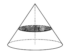 Объём конуса равен 40. Через середину высоты параллельно основанию конуса проведено сечение, которое является основанием меньшего конуса с той же вер¬шиной. Найдите объём меньшего конуса.