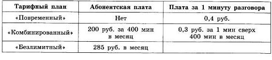 Телефонная компания предоставляет на выбор три тарифных плана.