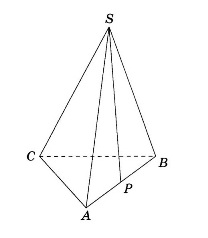 В правильной треугольной пирамиде SABC Р — середина ребра АВ, S — вершина. Известно, что ВС = 5, a SP = 6. Найдите площадь боковой поверхности пирамиды.