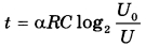 = 22 кВ. После выключения телевизора напряжение на конденсаторе убывает до значения U (кВ) за время, определяемое выражением